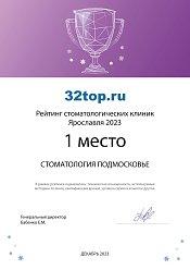 По результату ежегодного рейтинга вошли в топ 10 частных стоматологий Ярославской области.