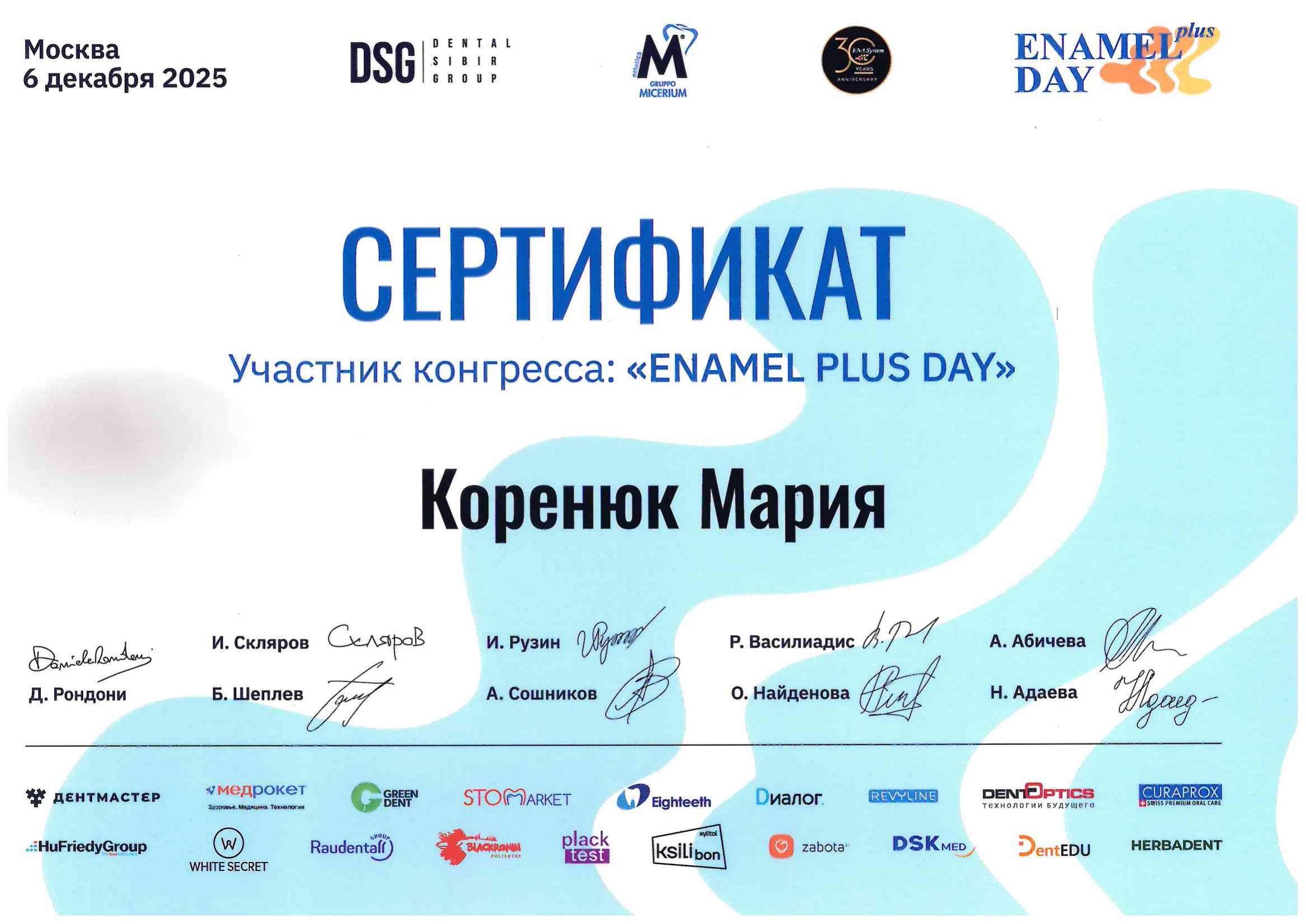 Благодарю доктора Коренюк Марию Николаевну, ассистента Хиневич Марию и техника Мышева Александра Викторовича за возвращение (после перелома коронки переднего зуба) моей дочечке красивой улыбки. Спасибо за чуткое отношение и профессионализм.