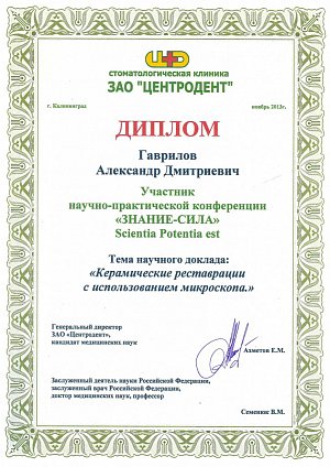 Здравствуйте, уважаемый Александр Дмитриевич! Думаю Калининградская область в целом и клиника «Центродент» в частности потеряла высококлассного профессионала и специалиста врача и просто великолепного человека, в связи с Вашим убытием на родину в Ярославль. Но память — ВЕЧНА!!! Спасибо Вам и храни Вас Бог…