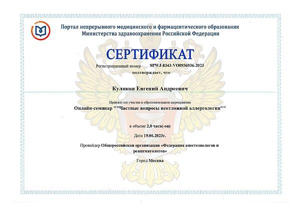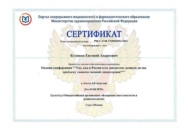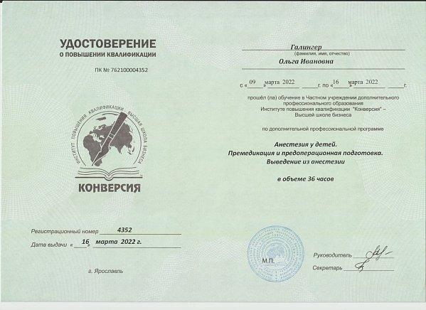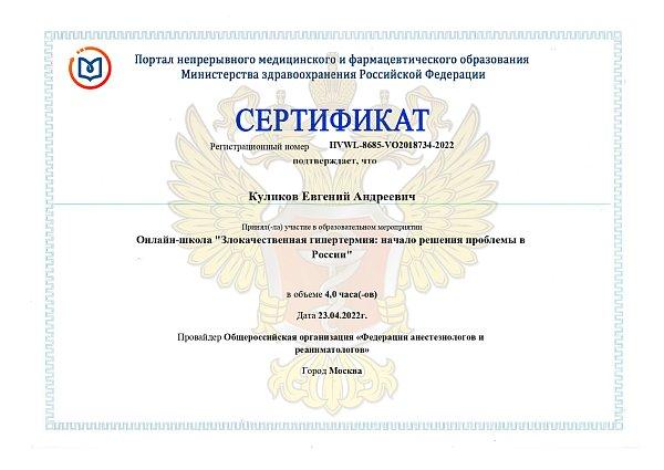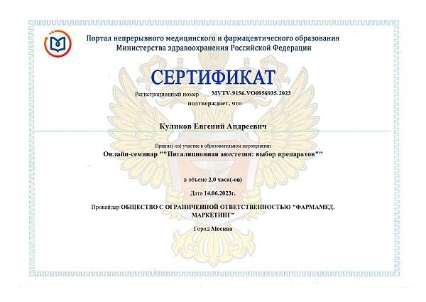 Все сотрудники имеют сертификат по специальности анестезиология и реаниматология.