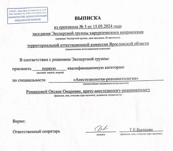 Все сотрудники имеют сертификат по специальности анестезиология и реаниматология.
