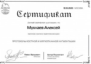 В 2018г. окончил клиническую ординатуру по хирургической стоматологии на кафедре клинической стоматологии и ЧЛХ №1 под руководством проф. Варшавского А.И,. в ГБОУ ВПО Ярославской области «Ярославский государственный медицинский университет».