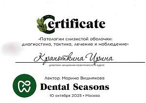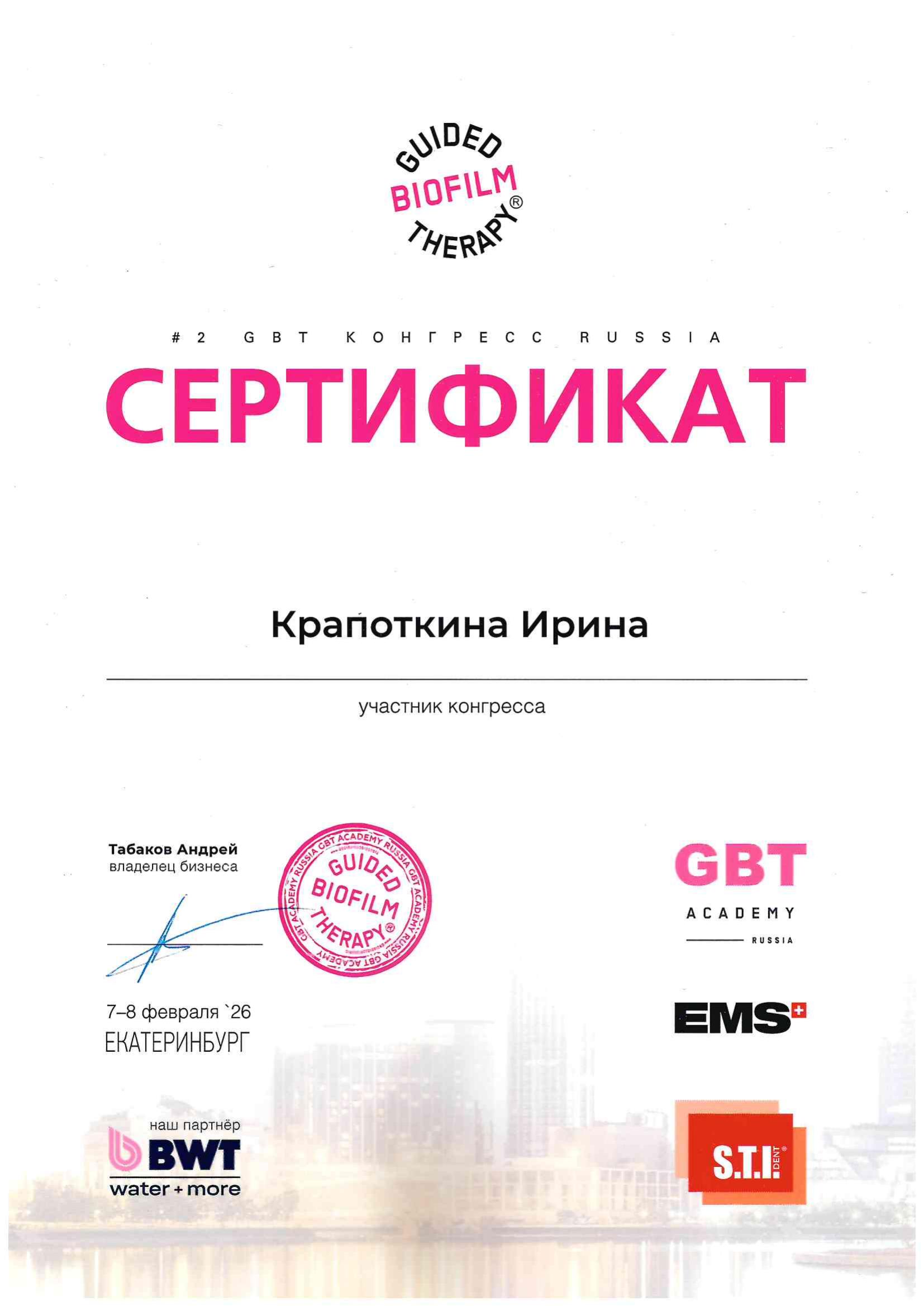 Крапоткина Ирина Андреевна — отличный специалист! Процедура прошла в приятной, атмосфере, получила рекомендации по профилактике и лечению. Благодарю за Ваш профессионализм!