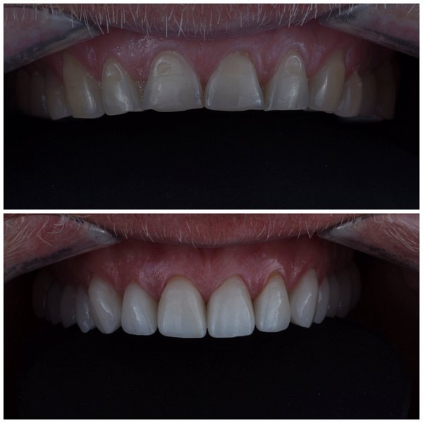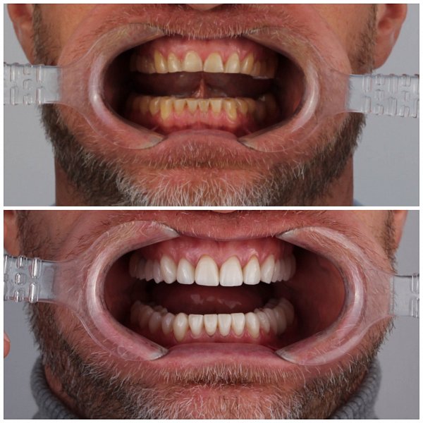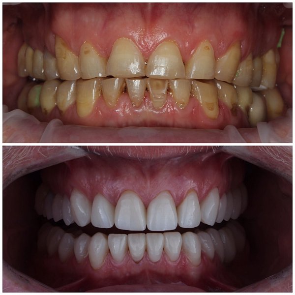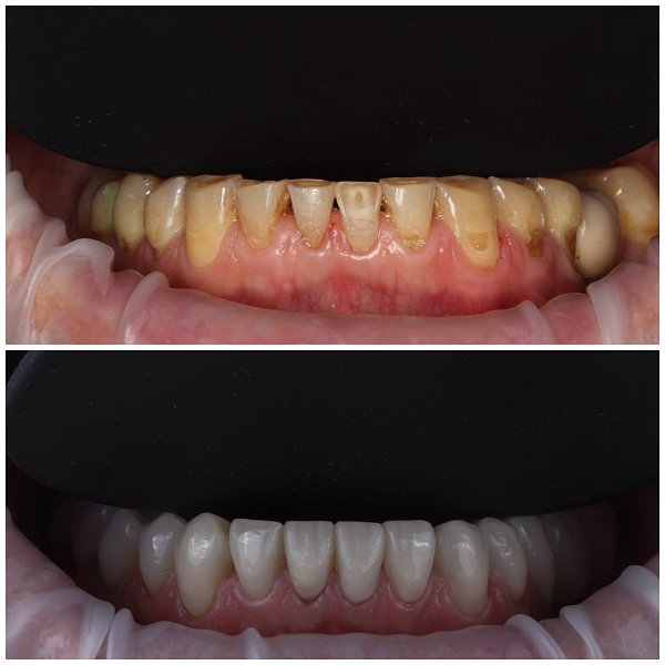 И в заключении уже Александр Дмитриевич в команде с зубным техником Александром Вадимовичем Дибривным сделали керамические реставарации 11, 12, 21, 22, 16, 17, 26, 36, 37, 46, 47 зубов.