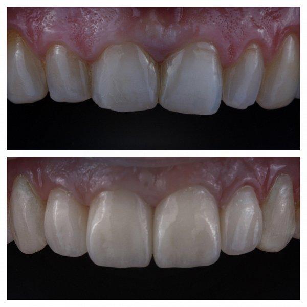 После реставрации винирами из прессованной керамики.