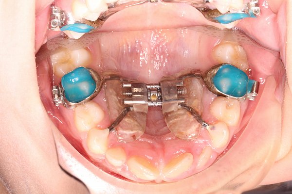 1)использование несъемного аппарата для расширения верхней челюсти Марко Росса