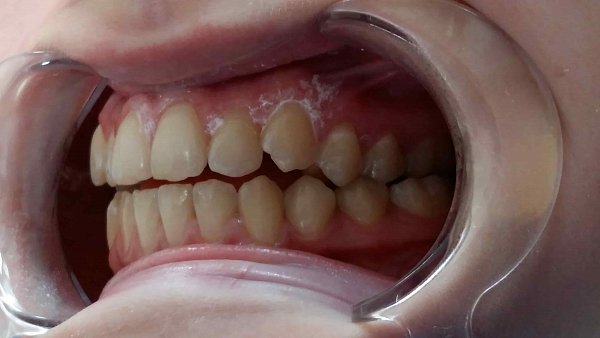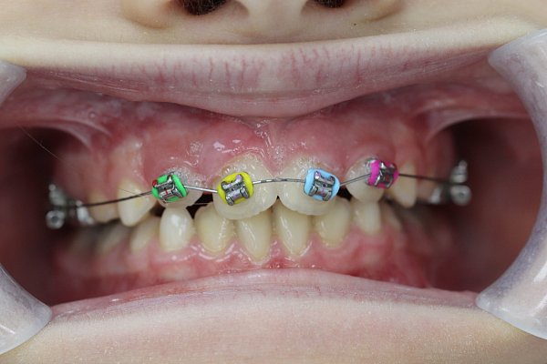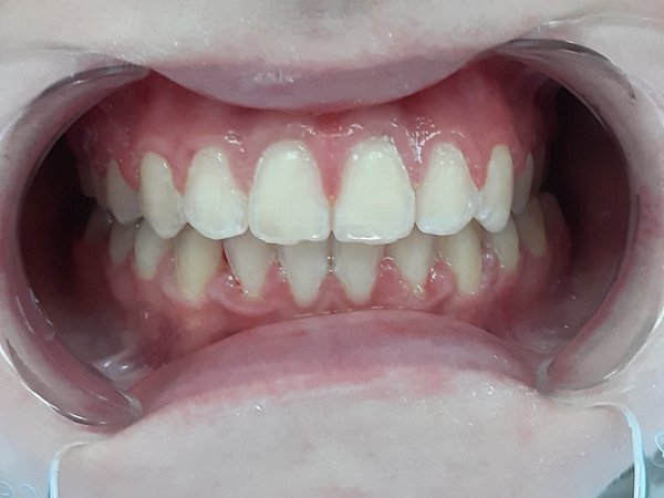 2)Через 4 месяца установка частичной брекет-системы 2 на 4 для выравнивания передней группы зубов;