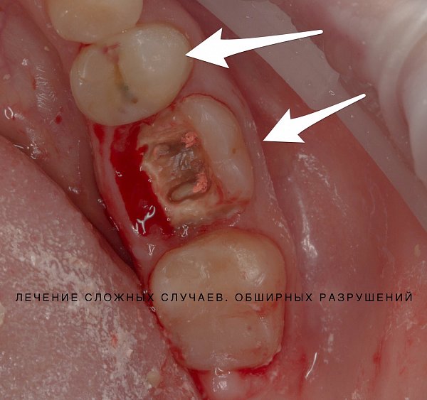 Исходная ситуация — обширное разрушение зуба.