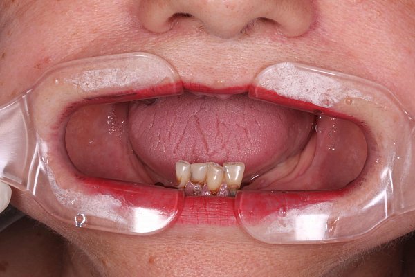 Зубы нижней челюсти пациент принял решение восстановить композиционными реставрациями, далее будет проводится протезирование на имплантатах в жевательном отделе нижней челюсти