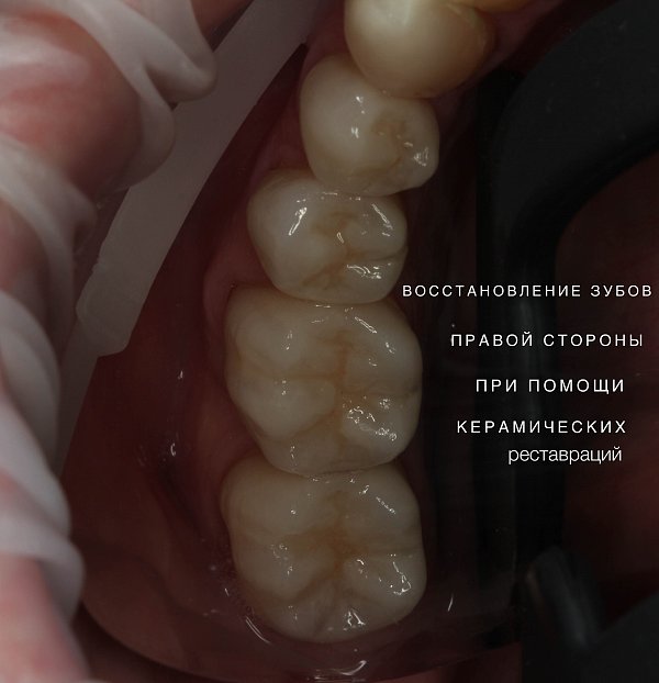 Выполнена реставрация накладками из прессованной керамики.