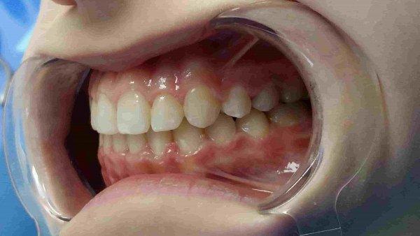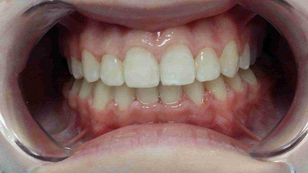 - В области передней группы зубов были оставлены промежутки, для возможности увеличения размеров зубов